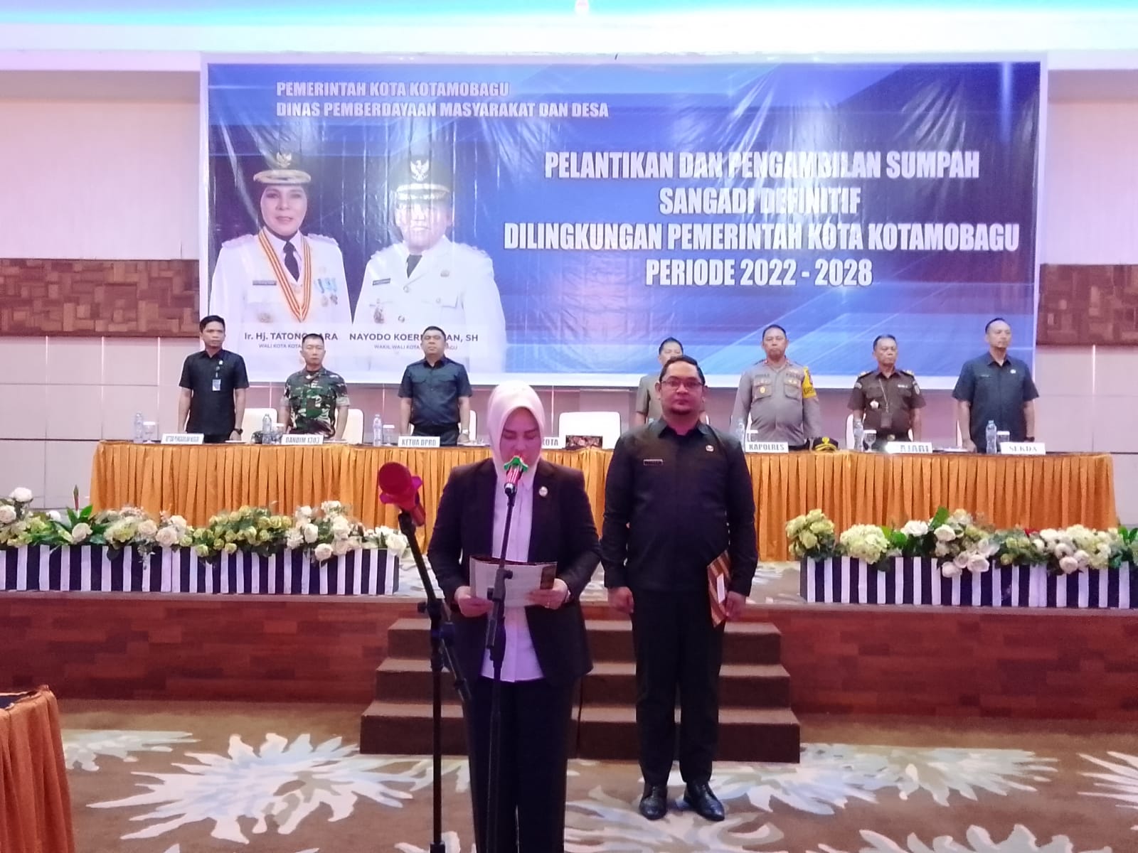 Pelantikan dan pengambilan sumpah kepada para Sangadi definitif periode 2022 – 2028 ini dilaksanakan di Ball Room Hotel Sutanraja Kotamobagu, Rabu 28 Desember 2022 sekitar pukul 08.30 WITA.