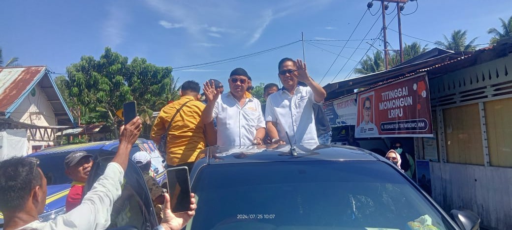 SUARAUTARA.COM, BUOL – Pasangan Cabup Buol, Abdullah Batalipu dan Wakil Bupati Adidjoyo Dauda dijemput dan diarak oleh pihak keluarga kedua pasangan dan jajaran pengurus DPD Golkar Buol serta beberapa petinggi Partai Demokrat selaku pengurus pasangan Mengabdi inienuju pusat kota Buol, Kamis 25 Juli 2024.