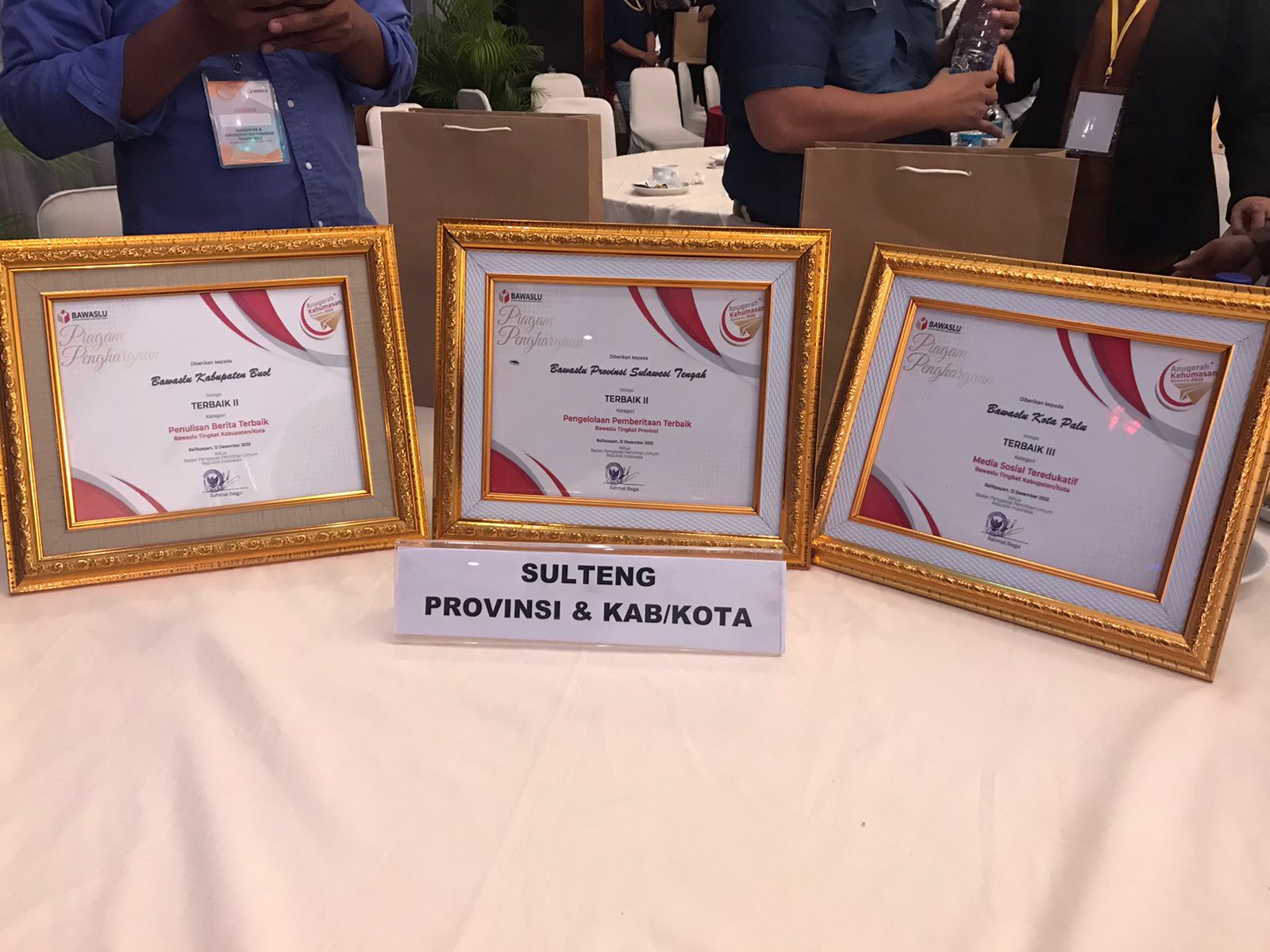 Untuk diketahui, Provinsi Sulawesi Tengah (Sulteng), Kota Palu dan Kabupaten Buol membawa pulang 3 penghargaan Anugerah Kehumasan dari Bawaslu RI yaitu Kota Palu meraih penghargaan terbaik III untuk kategori Media Sosial Teredukatif, untuk Kabupaten Buol kategori terbaik II dalam Penulisan Berita dan Bawaslu Sulteng kategori terbaik II dalam pengelolaan pemberitaan.