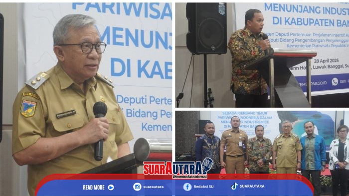 BANGGAI, SUARAUTARA.COM – Wakil Bupati Banggai, Drs. H. Furqanuddin Masulili, MM., secara resmi membuka kegiatan Bimbingan Teknis (Bimtek) bertema “Menggali Potensi Banggai Sebagai Gerbang Timur Pariwisata Indonesia Dalam Menunjang Industri MICE”, yang digelar pada Senin pagi (27/04/2025) di Hotel Swiss-Belinn Luwuk. Kegiatan ini diselenggarakan oleh Kementerian Pariwisata RI dalam rangka mendukung pengembangan sektor Meeting, Incentive, Convention, and Exhibition (MICE) di Kabupaten Banggai.