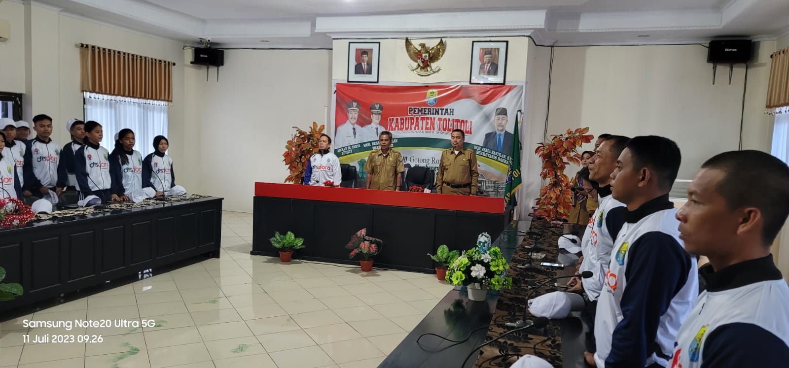TOLITOLI – Didampingi Kepala Dinas Pemuda dan Olahraga Rudy, S.Sos.,M.Si., Asisten Perekonomian dan Pembangunan Setdakab Ir. Muh. Nur Munawar mewakili Bupati Tolitoli melepas secara resmi Kontingen Popda Kabupaten Tolitoli Tahun 2023 (Selasa,11-07-2023) bertempat di Suwot Pollimpungan Kantor Bupati.