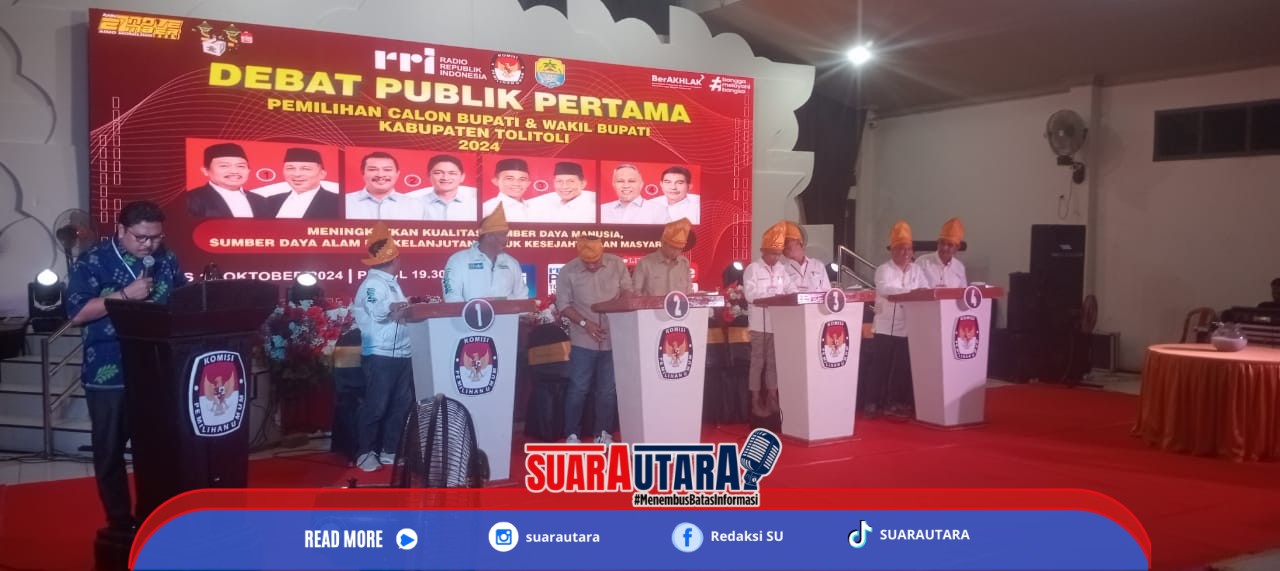 TOLITOLI – Debat kandidat calon Bupati dan Wakil Bupati Kabupaten Tolitoli, Sulawesi Tengah, berlangsung sukses pada hari (Kamis malam,17-10/2024) di Maramba Convention Center. Acara…