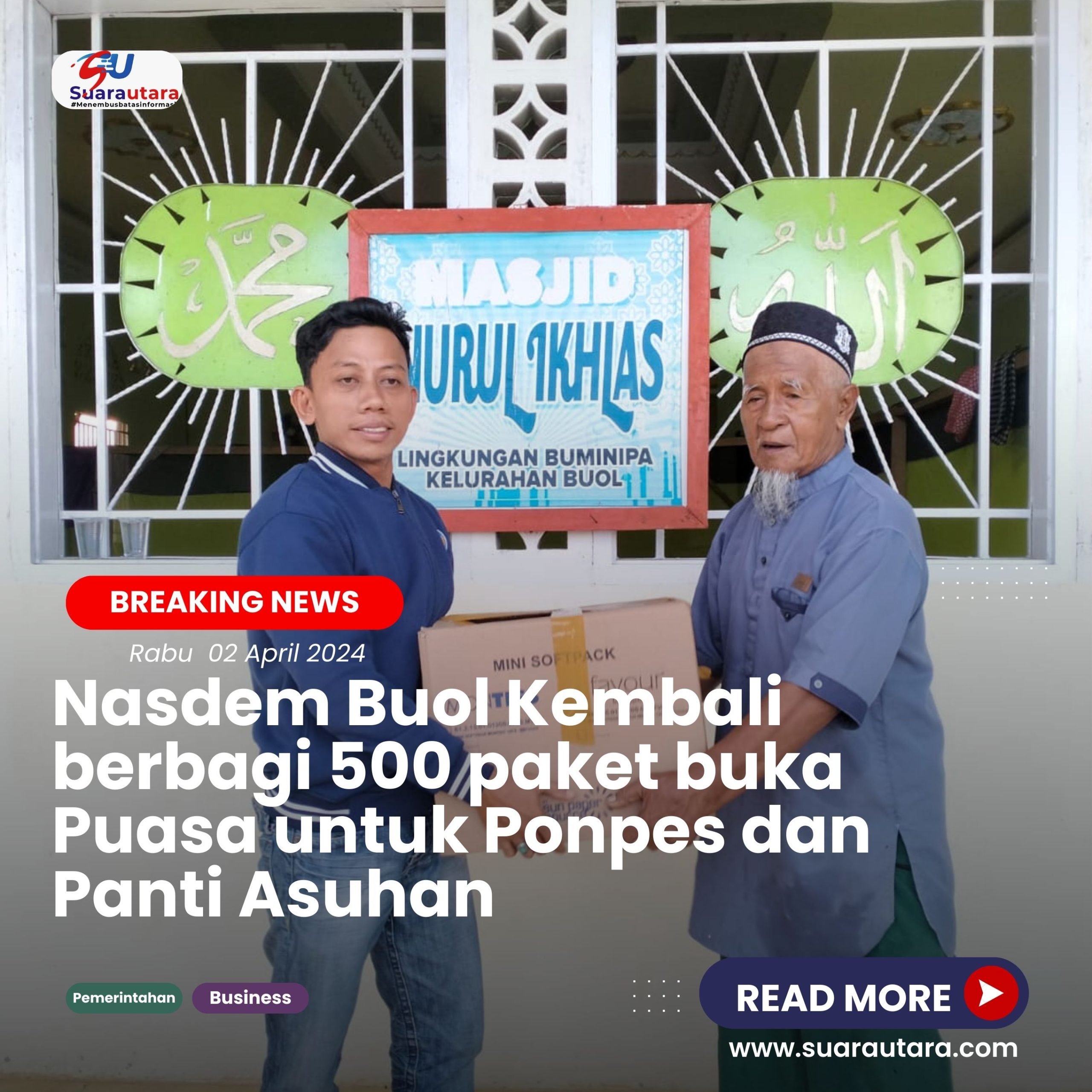 BUOL – Program Nasdem Berbagi adalah giat rutin tahunan selama Bulan Ramadhan, setelah melakukan kunjungan dan silahturahmi ke beberapa Pondok Pesantren untuk berbuka puasa,…