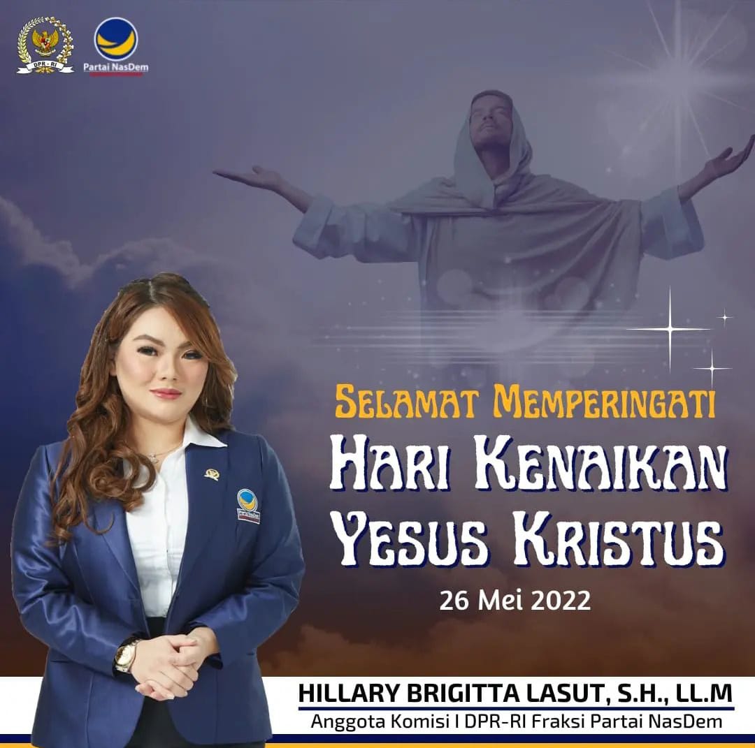 Selamat Memperingati Kenaikan Jesus Kristus 26 Mei 2022 Hillary Brigitta Lasut, SH,L.L.M Anggota Komisi I DPR RI/ Fraksi Partai Nasdem/ Daerah Pemilihan Sulawesi Utara