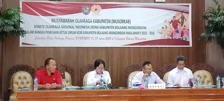 Musorkab tersebut dihadiri Ketua DPRD Bolmong Welty Komaling, serta jajaran pengurus KONI Provinsi Sulut serta pengurus Cabor.