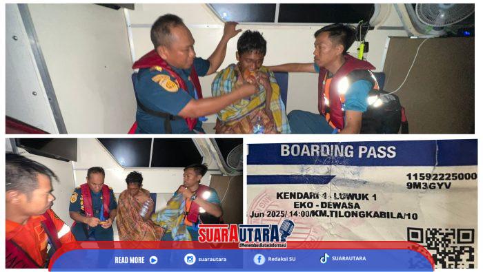 Banggai, Suarautara.com – Seorang penumpang kapal KM Tilong Kabila yang nekat melompat ke laut berhasil ditemukan selamat oleh tim gabungan Basarnas dan KPLP Pelabuhan Luwuk, pada Senin malam (17/06/2025) sekitar pukul 23.15 WITA. Pria tersebut diketahui bernama N,T, warga Desa Resarina, Kecamatan Balantak Selatan, Kabupaten Banggai.