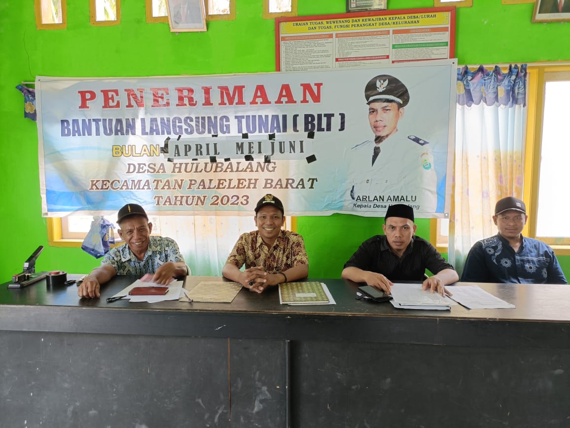Penyaluran BLT Dana desa kepada 28 KPM itu dilaksanakan di kantor desa, dihadiri langsung oleh Camat Paleleh Barat, Wahyudin Hi Kadir, SE, Kades Hulubalang, Arlan Amalu, Sekdes Haslan Abd Ali, Bhabinkamtibmas Bripka Ghalib, pendamping lokal desa (PLD) Suparjan Lahay dan masyarakat penerima.