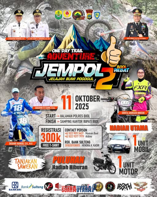Event “Jempol 2 – Jelajah Bumi Pogogul” ini diprediksi menjadi salah satu agenda paling dinanti tahun ini oleh komunitas trail adventure di Buol dan sekitarnya — sebuah momentum menyatukan semangat olahraga, petualangan, dan perayaan HUT daerah yang penuh makna.