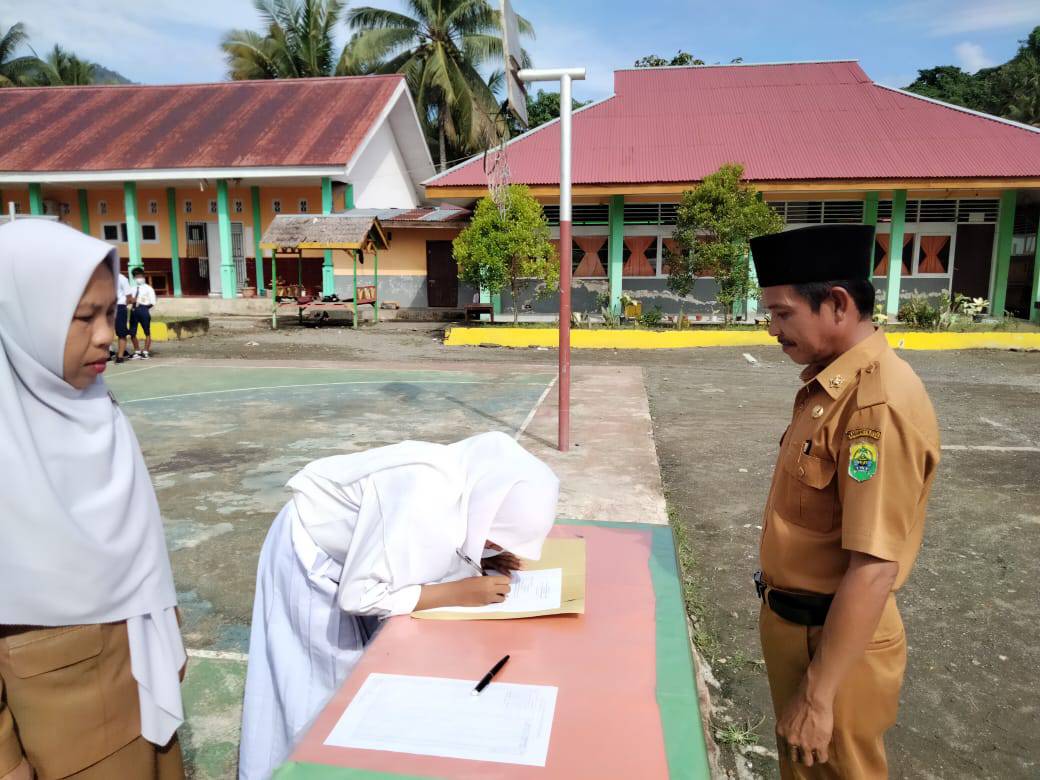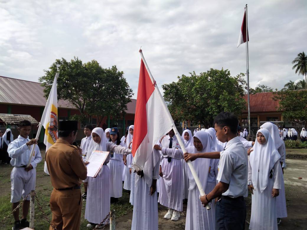 SUARAUTARA, Buol – Kepala SMP Negeri 1 Paleleh Melantik ketua OSIS Moh.Jhibran Aditya S. Mado masa bakti 2022-2023 di lapangan sekolah usai pelaksanaan upacara Bendera, Senin (29/8/2022).
