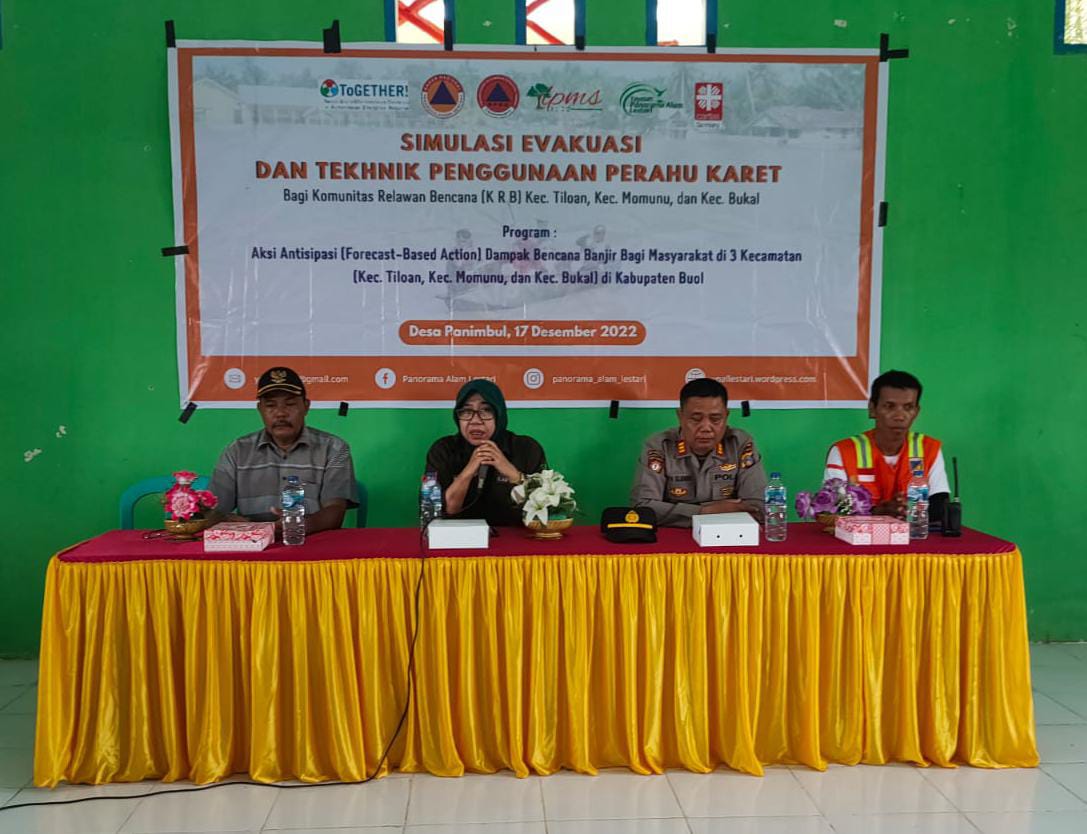 Eko Budiman selaku Direktur LPMS – KSDA Buol memaparkan bahwa “..Kegiatan Simulasi Evakuasi Korban Bencana Banjir dan Tekhnik Penggunaan Perahu Karet merupakan rangkaian kegiatan Program Aksi Antisipasi (Forecast – Based Action) Bencana Banjir di Kab. Buol. Sasaran program berada di Kec. Tiloan, Kec. Momunu dan Kec. Bukal dengan intervensi berada di 17 Desa pada wilayah Kecamatan tersebut. Program ini merupakan kerjasama Lembaga Penguatan Masyarakat Sipil dan Konservasi Sumber Daya Alam (LPMS – KSDA) Buol dengan Yayasan Panorama Alam Lestari (YPAL) Poso yang didanai oleh NGO Luar Negeri Caritas Germany dalam skema Program HOIFA.
