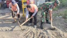 Babinsa Kendit Bersama Warga Laksanakan Kerja Bakti Bersihkan Material Tanah di Badan Jalan