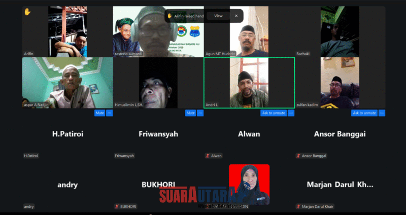 Suarautara.com, Banggai – Pengurus Cabang Nahdlatul Ulama (PCNU) Kabupaten Banggai menggelar rapat koordinasi bersama Majelis Wakil Cabang (MWC) dan Badan Otonom (Banom) NU seperti Pergunu secara virtual melalui Zoom Meeting pada Kamis (9/10/2025).