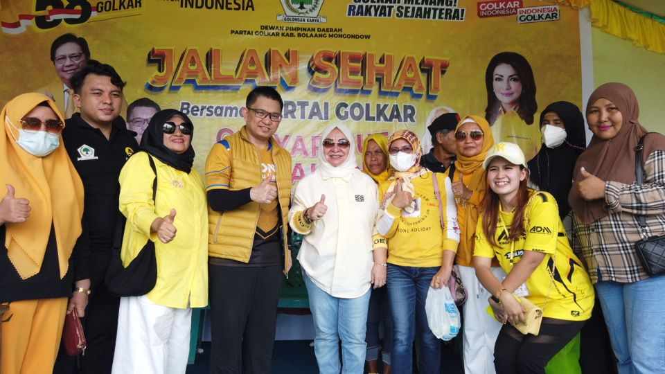 SUARAUTARA.BMR – Jalan Sehat HUT ke 58 Partai Golkar di Kabupaten Bolaang Mongondow Provinsi Sulawesi Utara diikuti ratusan peserta. Nampak antusias peserta jalan sehat cukup tinggi yang hadir sejak pagi di lapangan olahraga Daagon Lolak, Sabtu 15-102022.