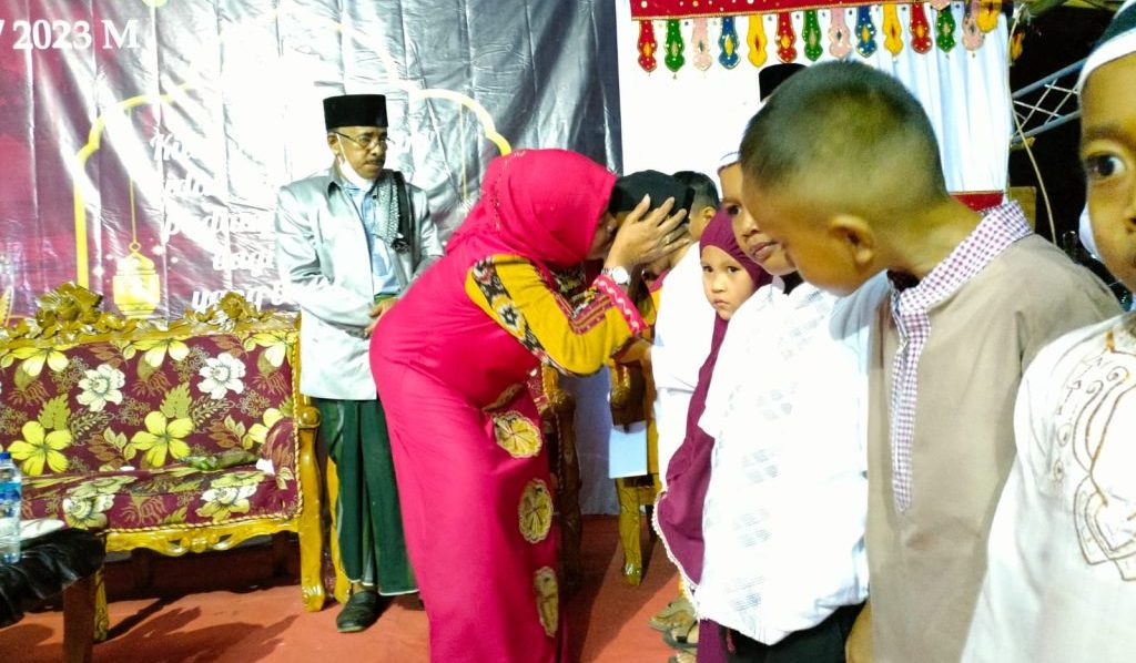 Sebelum kegiatan ini diakhiri, Ketua TP PKK Bolmong, Ny Irianti S Mokodompit Uswanas, menyantuni anak yatim piatu dengan memberikan sedekah berupa uang tunai.