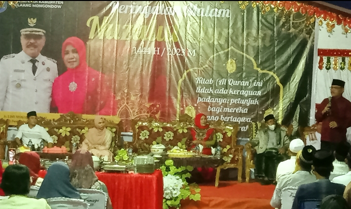 BOLMONG — Pemerintah Kabupaten Bolaang Mongondow (Bolmong), Provinsi Sulawesi Utara (Sulut), memasuki malam ke 16 bulan Ramadhan, menggelar peringatan Nuzulul Qur’an Ramadan 1444 Hijriah, bertempat di masjid Al-Ikhlas, Desa Bumbung, Kecamatan Lolak, Jumat (07/04/2023) malam.