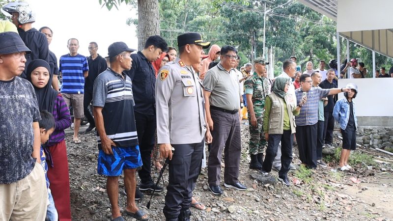 Penjabat walikota dan kapolres bersama team mendatangi lokasi banjir dan tanah longsor serta turut memberikan bantuan material terhadap warga yang ditimpa bencana, Jumat 31 Januari 2025.