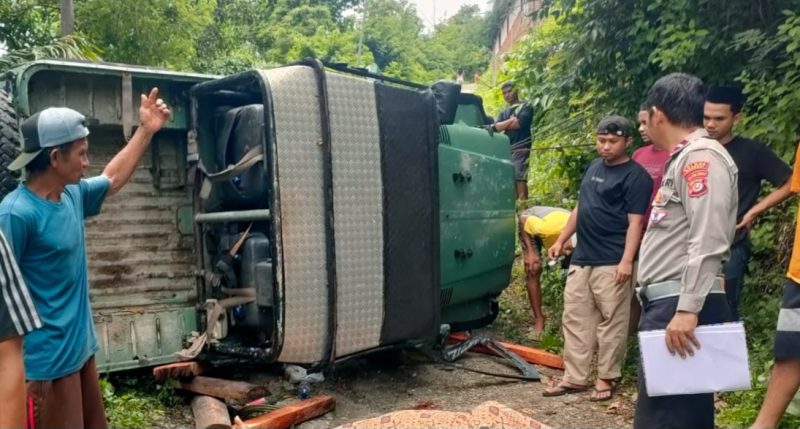 Petugas Polres Banggai Olah TKP Mobil Rem Blong Terbalik, Pengemudi Hartop Tewas di Tempat
