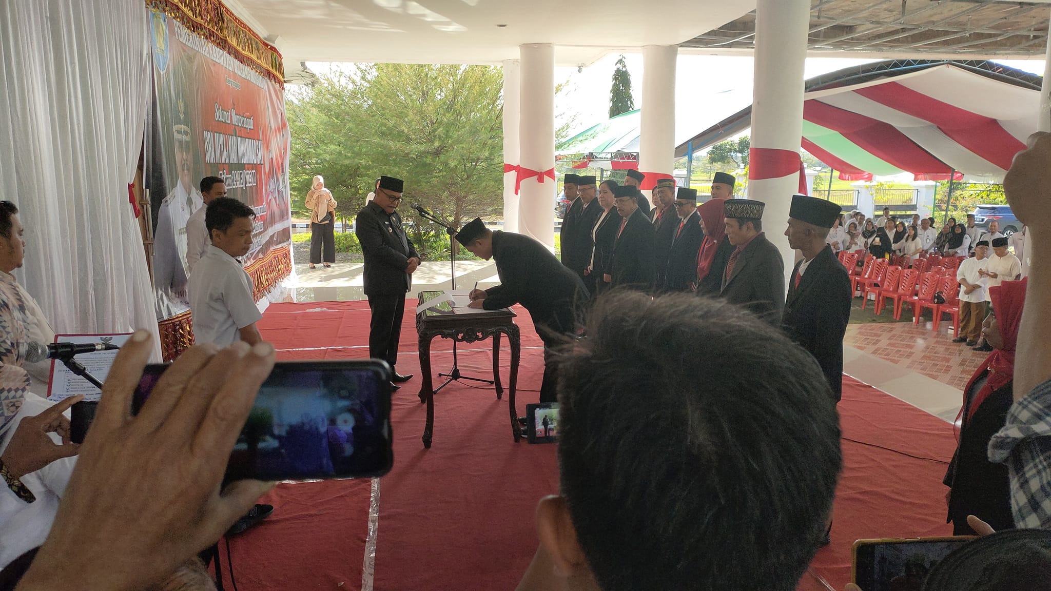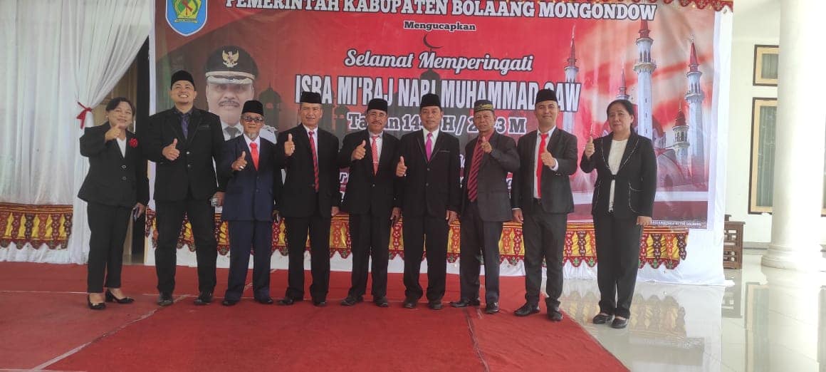 Pengurus BKSAUA dan Baznas Bolmong dikukuhkan Limi saat perayaan Isra Mi’raj Pemkab Bolmong bertempat di rumah Dinas (Rudis) Bupati, Desa Lalow, Kecamatan Lolak, Rabu (22/2/23).