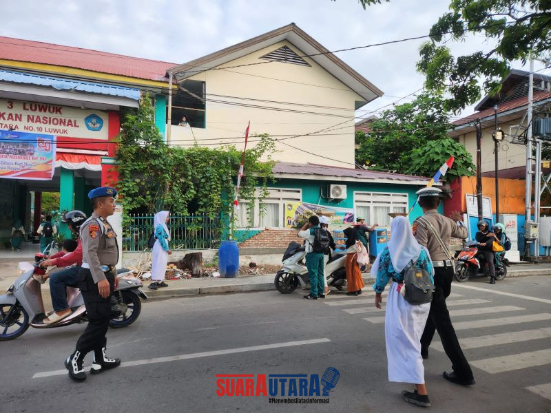 Kasi Propam Polres Banggai, IPDA Andi Habibi, mengatakan bahwa pihaknya melakukan pengaturan arus lalu lintas dan membantu menyeberangkan para pelajar yang hendak masuk sekolah.