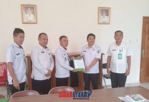 Suarautara. com, Bolmong – Wakil Bupati Bolaang Mongondow, Dony Lumenta hadir sekaligus menyerahkan berita acara dan SK pergantian Penjabat (Pj) Kepala Desa Tadoy 1, Desmin Tasrip, S. Pd, MM kepada Penjabat Baru, Supriadi Dilapangan, SE, MM yang juga sebagai Camat Bolaang Timur.