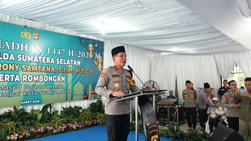 PRABUMULIH, SUARAUTARA.COM – Komitmen menjaga stabilitas keamanan selama bulan suci Ramadhan kembali ditegaskan jajaran Polda Sumsel. Wakapolda Sumsel, Brigjen Pol Rony Samtana, memimpin langsung kegiatan Safari Ramadhan di Masjid Baiturrahman, Kota Prabumulih, Selasa (3/3/2026).