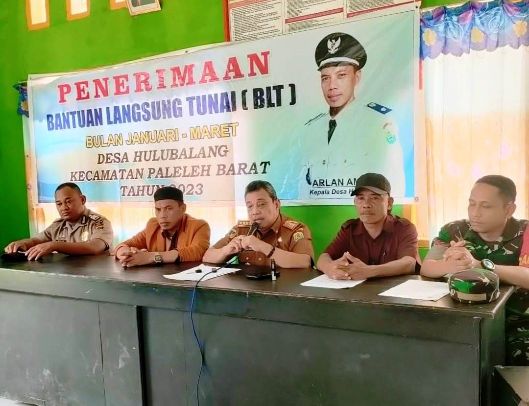 “ atas nama masyarakat desa Hulubalang mengucapkan terima kasih kepada pak Sekda dan Kadis P3A-PMD telah sudi berkunjung ke desa kami terkait penyaluran serentak BLT di kecamatan Paleleh dan Palbar, kami mengapresiasi hal ini, “ ungkap Arlan.