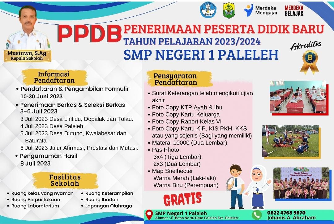 SMP N 1 Paleleh Buka PPDB Tahun Ajaran 2023/2024