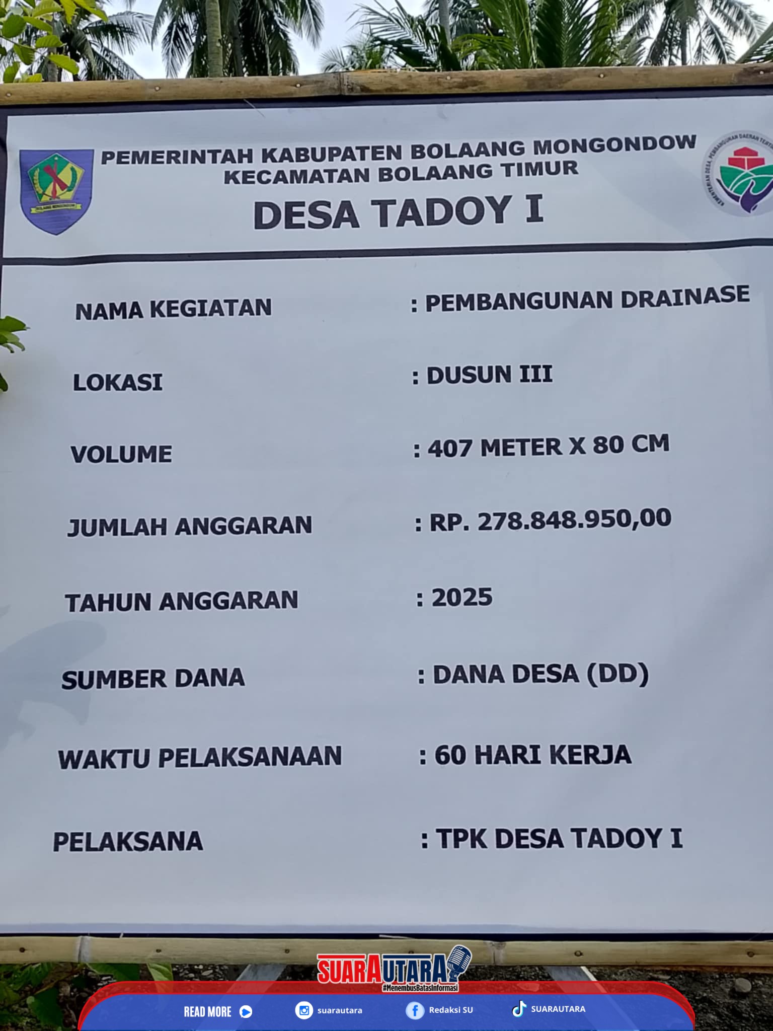 Yasit Mamonto Sangadi Tadoy 1 kepada media ini, Minggu (27/4/2025) mengatakan rencana pembangunan ini sudah sejak lama dimasukan dalam skala prioritas setiap musdes dilakukan sesuai usulan masyarakat, dan pada tahun ini telah dianggarkan dalam proses pekeraan.