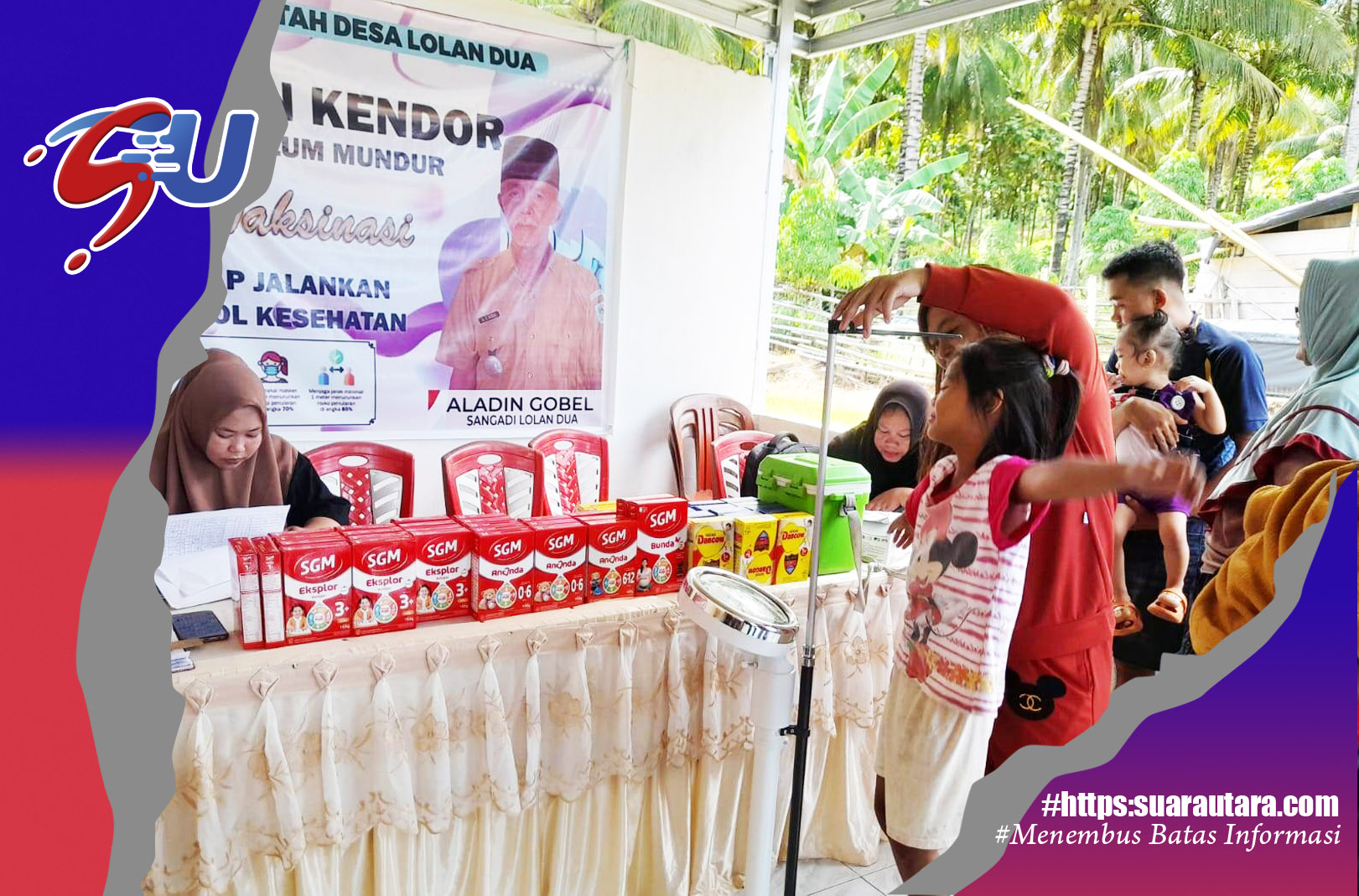 SUARABOLMONG – Dukung peningkatan pelayanan kesehatan bagi ibu – ibu menyusui dan anak usia balita dan para Lansia, Pemerintah desa Lolan Dua, membagikan Susu…