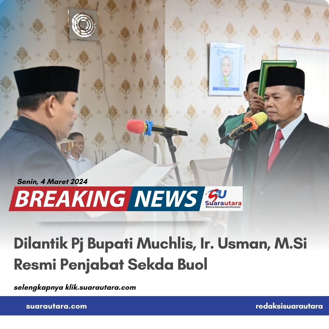 SUARAUTARA, PALU – Pj Bupati Buol, Drs. Muchlis, MM melantik dan mengambil sumpah jabatan kepada Penjabat Sekretaris Daerah (Sekda) Buol, Ir. Usman, M.Si, bertempat…