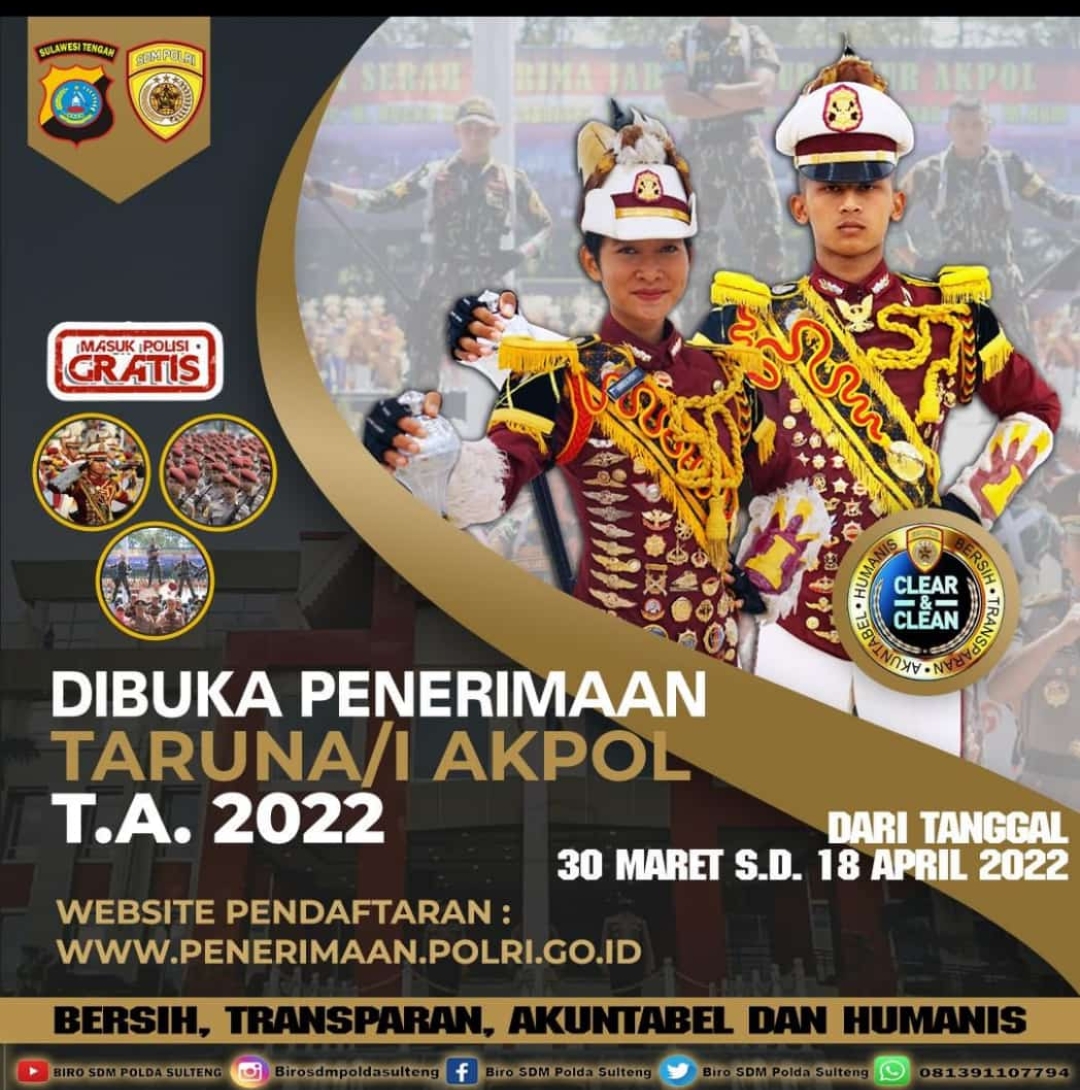 SUARAUTARA.COM, Buol – ,Kepolisian Negara Republik Indonesia membuka penerimaan Taruna-Taruni Akpol TA. 2022 dengan waktu pendaftaran mulai tanggal 30 Maret s/d 18 April 2022….