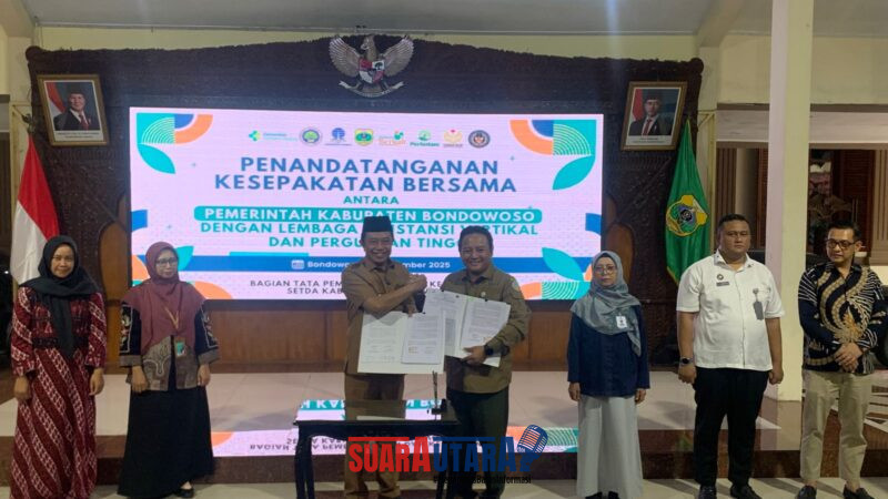 SUARAUTARA.COM|BONDOWOSO – Perum Perhutani Divisi Regional Jawa Timur resmi menjalin kerja sama strategis dengan Pemerintah Kabupaten Bondowoso melalui penandatanganan Nota Kesepahaman (MoU/Memorandum of Understanding) tentang Pemanfaatan dan Penggunaan Kawasan Hutan di Wilayah Administratif Kabupaten Bondowoso antara Kepala Divisi Regional (Kadivre) Perhutani Jawa Timur dan Bupati Bondowoso. Kegiatan tersebut dilaksanakan di Pendopo Kabupaten Bondowoso dan turut disaksikan oleh Jajaran Manajemen Perhutani KPH Bondowoso, Forkopimda, dan perwakilan stakeholder, (9/12/2025).