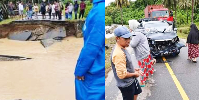 Ketiga jembatan yang putus itu diantaranya, Jembatan yang ada di desa Aung Kecamatan Galang, di desa Bajungan Kecamata Galang, dan Jembatan di desa Galumpung Kecamatan Dakopemean juga terputus.