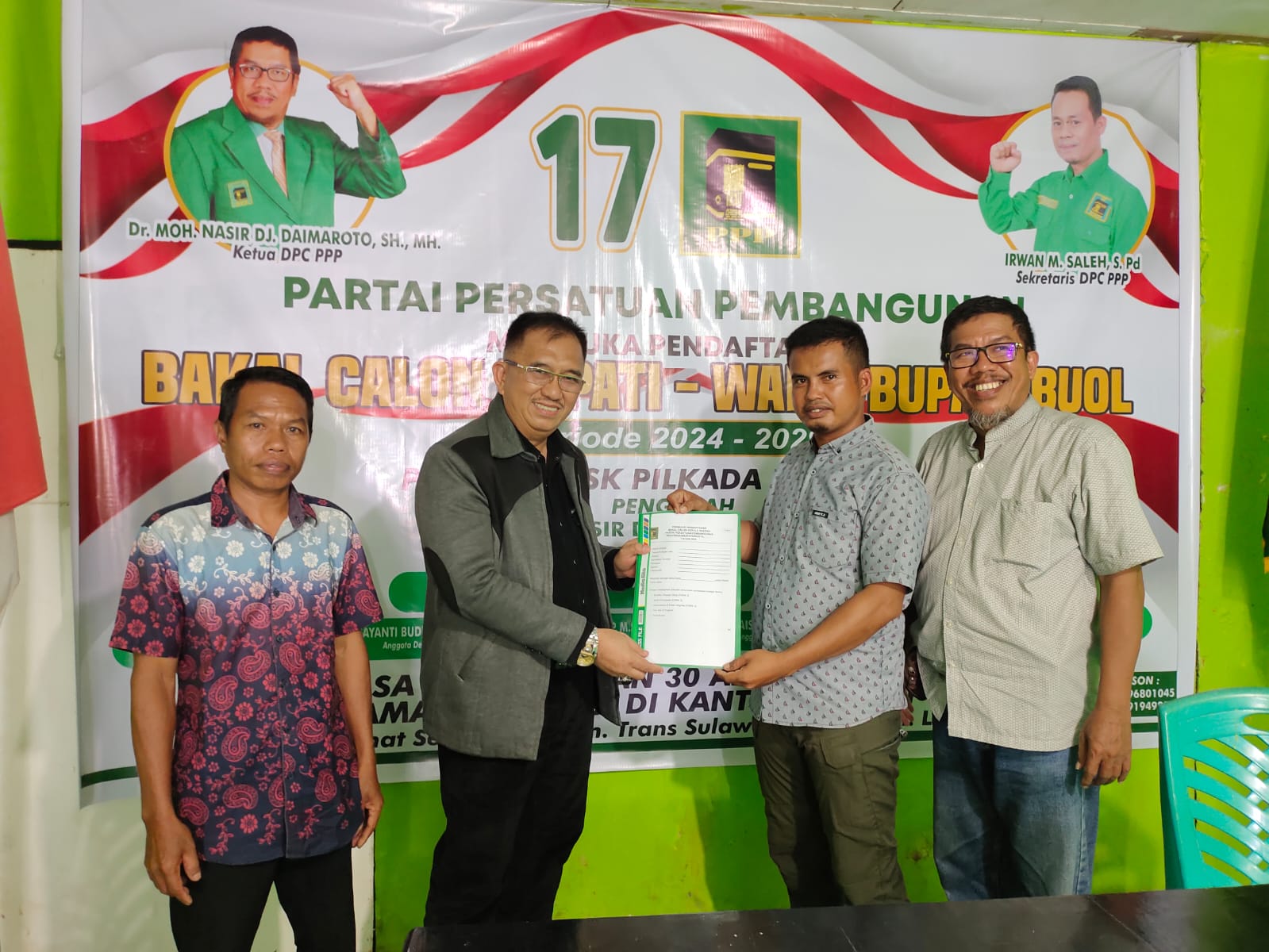 Kedatangan Tim pendamping bersama Calon Bupati Abd Faisal Pontoh di kantor DPC Gerindra diterima diterima ketua badan seleksi Pilkada Buol, Drs Samsul O. Samah, M.Si, didampingi anggota, Harmoko kuntuamas, S.IP, Moh Imam Arfandi. sedangkan untuk pengambilan formulir di Sekretariat diterima langsung ketua DPD PPP Buol, DR. Moh.Nasir Dj. Daimaroto, S.H, M.H Sekretaris DPC PPP, Irwan Saleh, S.Pd, M.Pd, ketua Desk, Arianto dan untuk