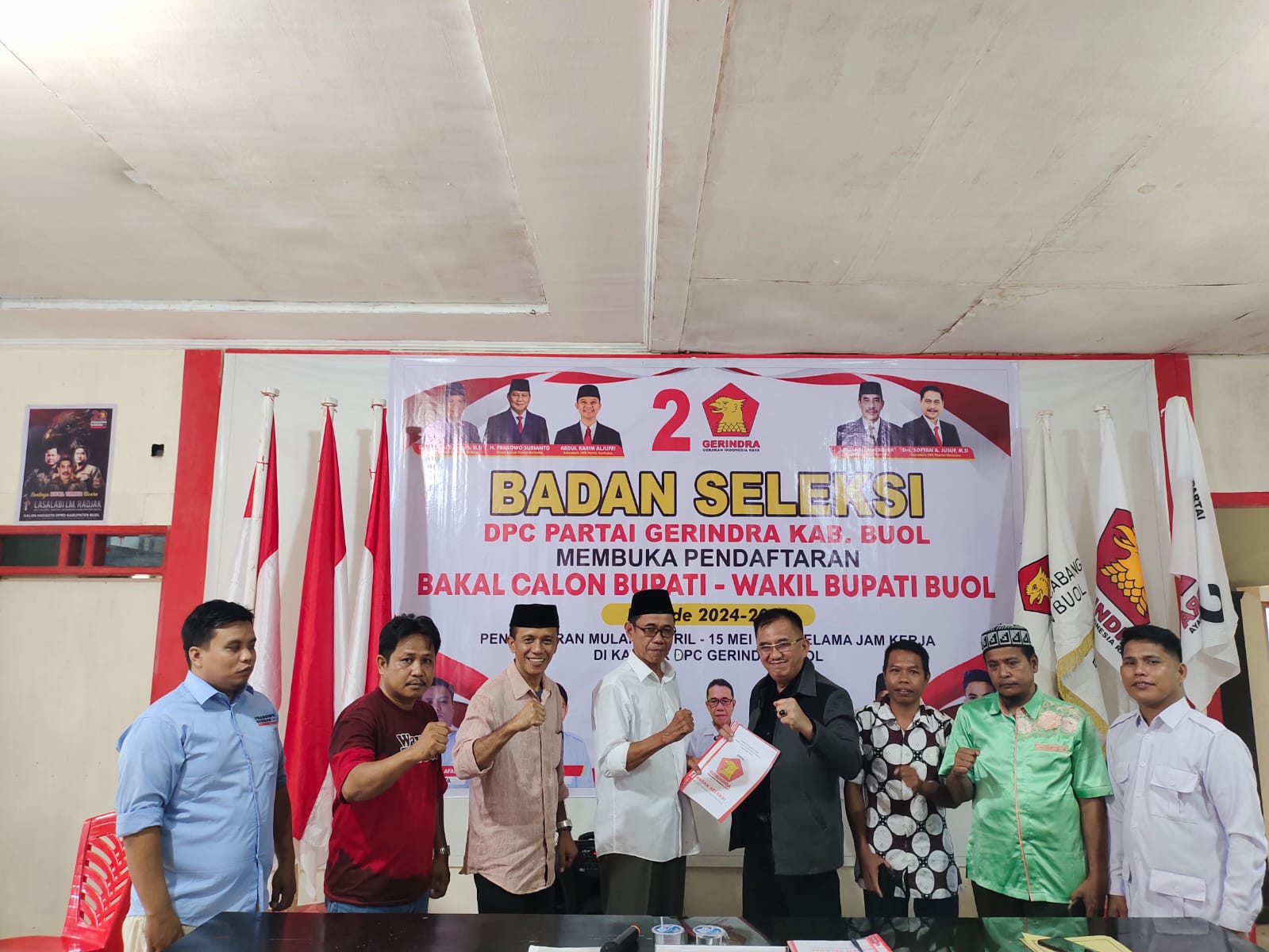 Keseriusan mantan Kepala Kantor UPP Kelas III Molawe Kabupaten Konawe Utara, Propinsi Sulawesi Tenggara itu maju dalam kontestasi Pilkada November mendatang dibilang tak main-main, guna menjalin koalisi di Pilkada Buol, dirinya Kembali mendatangi kantor DPC Gerindra dan PPP didampingi tim pendamping diantaranya Abdulah Rahman, S.P, Suparjan.U Ali Husni, S.H, S.IP, CFLE , Wawan dan Husni Lahama, guna pengambilan formulir pendaftaran dan siap bertarung dengan kontestan serta kandidat lainnya.