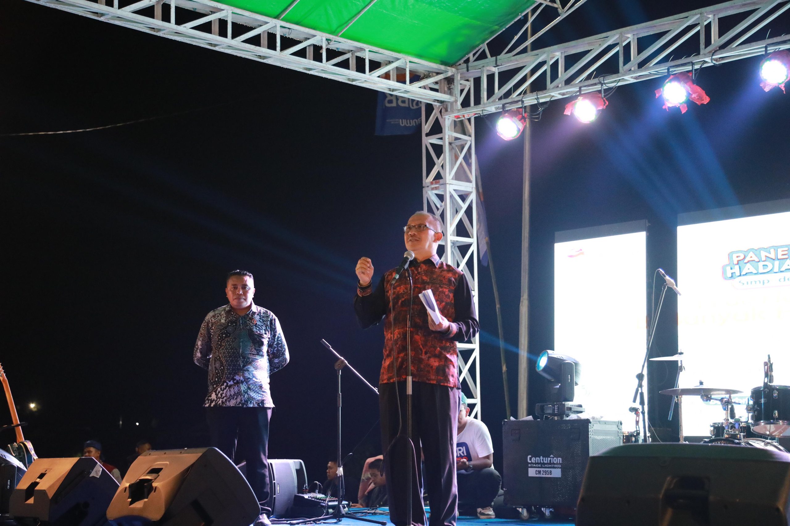 “Saya memberikan apresiasi yang setinggi – tingginya disertai ucapan terima kasih kepada PT. BRI Cabang Kotamobagu yang telah melaksanakan kegiatan pada malam hari ini dalam rangka pelaksanaan Panen Hadiah Simpedes BRI Kantor Cabang Kata walikota.