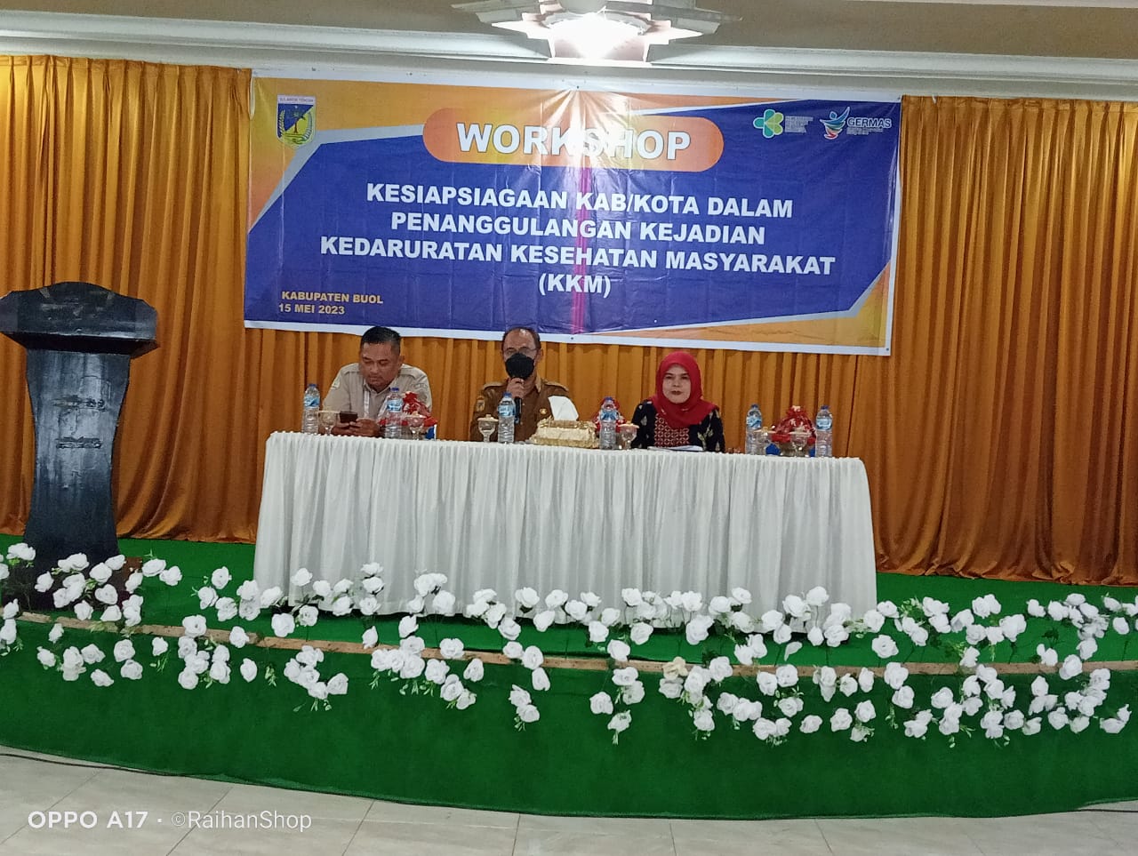 Pada hari senin tanggal 15 Mei 2023 jam 09.00 wita bertempat di Hotel Sri Utami Kelurahan Kulango, Kabupaten Buol telah berlangsung kegiatan Workshop Kesiapsiagaan Kabupaten Kota dalam Penanggulangan Kejadian Kedaruratan Kesehatan Masyarakat (KKM) di Kabupaten Buol Tahun 2023.